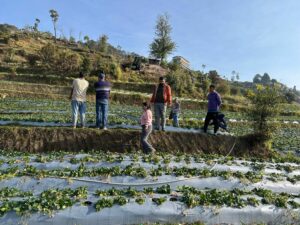 ककनीको काउले, हिलेभित्ते र चित्रेका झन्डै ४ सय किसानले स्ट्रबेरी खेती गर्दै आएका छन् । उनीहरूले कम्तीमा १ रोपनीदेखि बढीमा १० रोपनीसम्ममा स्ट्रबेरी खेती गरिरहेका छन् । झन्डै तीन दशकदेखि यहाँको प्रमुख नगदे बाली नै स्ट्रबेरी हो । स्ट्रबेरी वर्षमा ७ महिनासम्म फल्छ । कात्तिकदेखि वैशाखसम्म स्ट्रबेरी टिप्न मिल्ने छेसाङले बताए । ‘कात्तिक र मंसिरमा दिनकै टिपेर बजार पु¥याउने हो, पुस र माघमा जाडो हुन्छ, घाम लाग्दैन, त्यसैले दिन बिराएर टिप्ने हो,’ उनले भने, ‘फागुनदेखि फेरि दिनकै टिप्ने हो, उत्पादन बढ्छ र त मूल्य घट्छ ।’ स्ट्रबेरी बेचेर किलोको साढे ४ देखि ५ सय रुपैयाँ पाइने उनले सुनाए । वैशाखदेखि असोजम्म पुरानो बिरुवाको पात टिप्ने, नयाँ बिरुवा र जग्गा तयार पार्ने काम हुन्छ । विशेषगरी पर्याप्त घाम लाग्ने जमिनमा स्ट्रबेरीको उत्पादन बढी हुने उनीहरूको भनाइ छ ।
